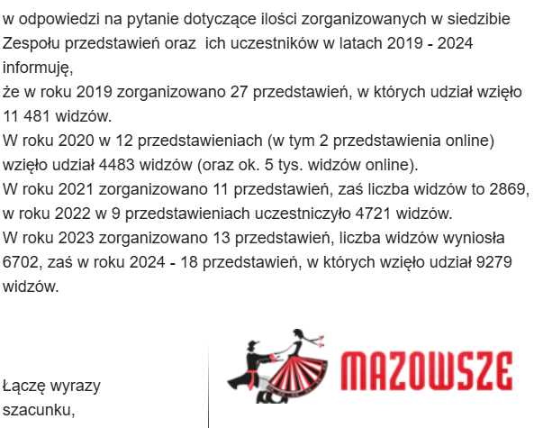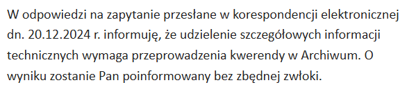 Grafika: Odpowiedź z 2 stycznia 2025 r., na pytanie o konkretną wydajność, które nadal jest bez odpowiedzi.