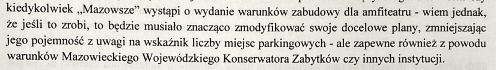 Już w tej chwili Państwowy Zespół Mazowsze dysponuje salą widowiskową na 500 miejsc, w której rzadko są zdarzenia kulturalne. Obiekt jest wykorzystywany często do innych celów. Już przy tej wielkości sali są problemy z dojazdem karetki do mieszkańców w potrzebie. Bałagan z parkowaniem, którego nie chce rozwiązać burmistrz, powoduje problem z dojazdem służb obsługi nieruchomości w (wywóz śmieci). Mieszkańcy już w tej chwili z powodu braku wyobraźnie ponoszą szkody.